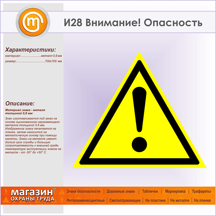 Знак «Внимание! Опасность», И28 (металл, сторона 700 мм) в Ижевске купить