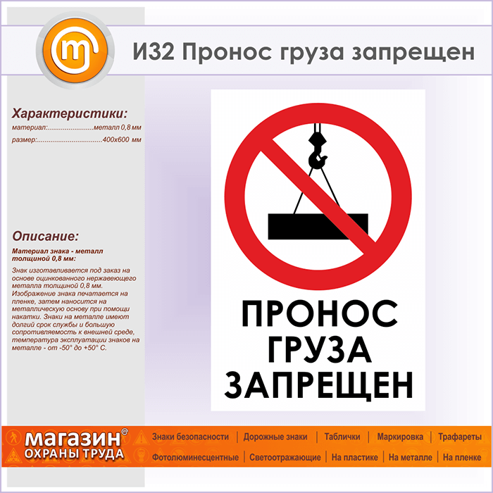 Знак «Пронос груза запрещен», И32 (металл, 400х600 мм) в Ижевске купить