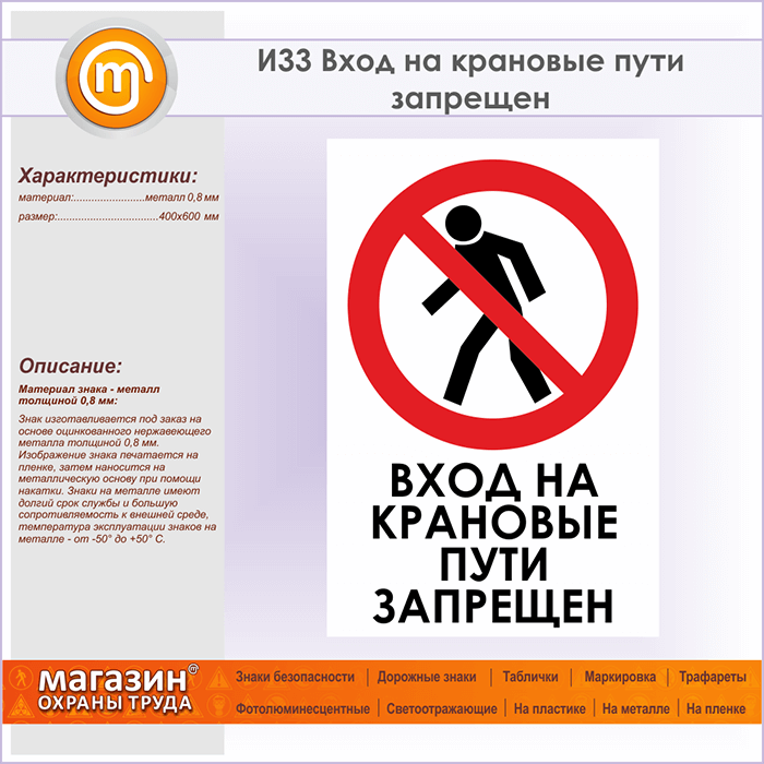 Знак «Вход на крановые пути запрещен», И33 (металл, 400х600 мм) в Ижевске купить