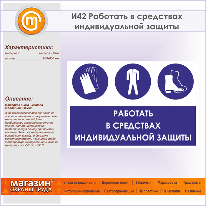 Знак «Работать в средствах индивидуальной защиты», И42 (металл, 900х600 мм) в Ижевске купить