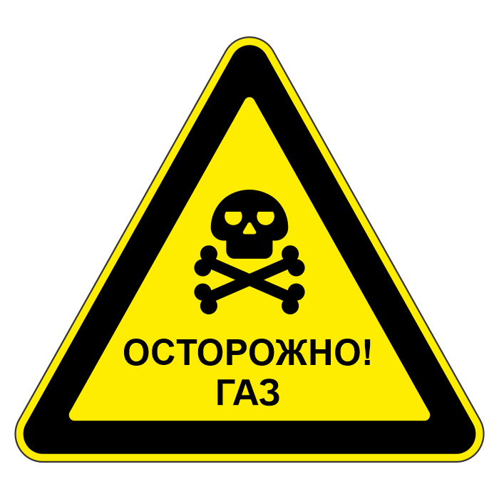 Знак «Осторожно! Газ», МГ-6 (металл 0,8 мм, II типоразмер: сторона 900 мм, С/О пленка: тип Б высокоинтенсивная) в Ижевске купить