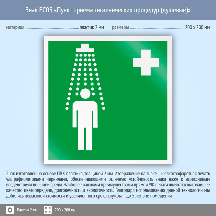 Знак EC03 «Пункт приема гигиенических процедур (душевые)» (пластик, 200х200 мм) в Ижевске купить