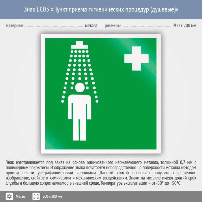 Знак EC03 «Пункт приема гигиенических процедур (душевые)» (металл, 200х200 мм) в Ижевске купить