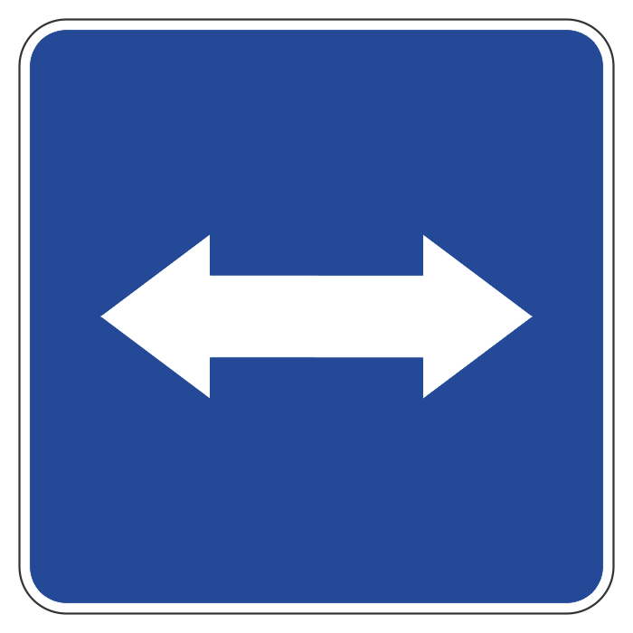 Дорожный знак 5.10 «Выезд на дорогу с реверсивным движением» (металл 0,8 мм, II типоразмер: сторона 700 мм, С/О пленка: тип В алмазная) в Ижевске купить