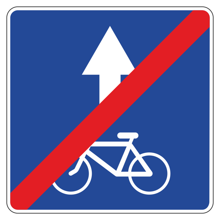 Дорожный знак 5.14.3 «Конец полосы для велосипедистов» (металл 0,8 мм, III типоразмер: сторона 900 мм, С/О пленка: тип Б высокоинтенсивная) в Ижевске купить