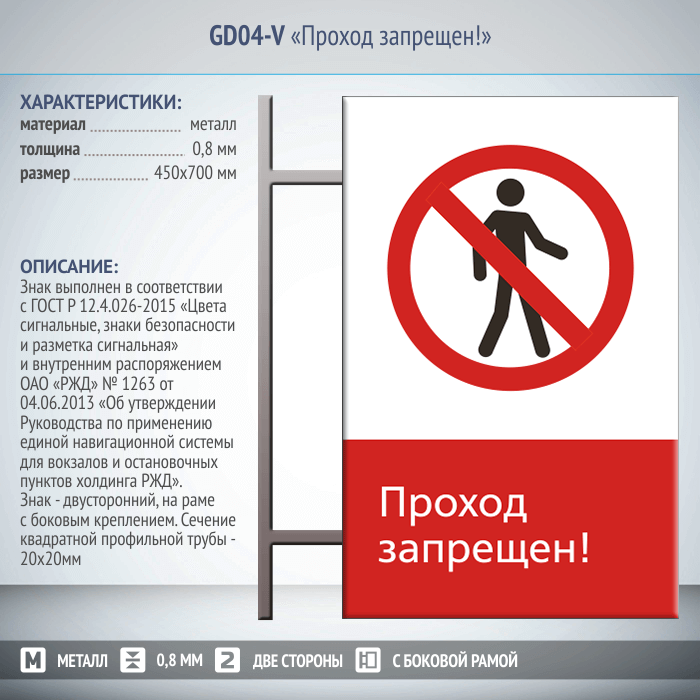 Знак «Проход запрещен!», GD04-V (двусторонний вертикальный, 450х700 мм, металл, на раме с боковым креплением) в Ижевске купить