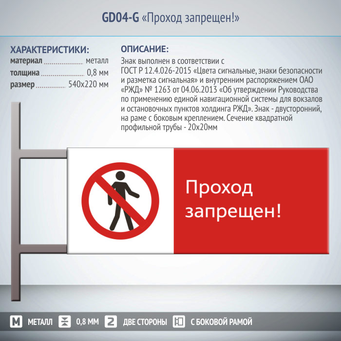 Знак «Проход запрещен!», GD04-G (двусторонний горизонтальный, 540х220 мм, металл, на раме с боковым креплением) в Ижевске купить