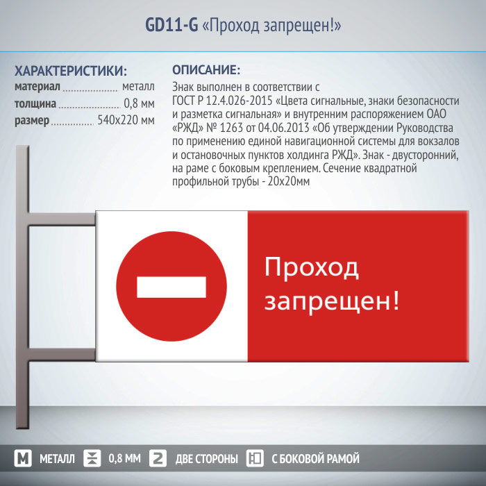 Знак «Проход запрещен!», GD11-G (двусторонний горизонтальный, 540х220 мм, металл, на раме с боковым креплением) в Ижевске купить