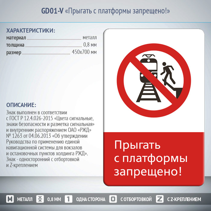 Знак «Прыгать с платформы запрещено!», GD01-V (односторонний вертикальный, 450х700 мм, металл, с отбортовкой и Z-креплением) в Ижевске купить