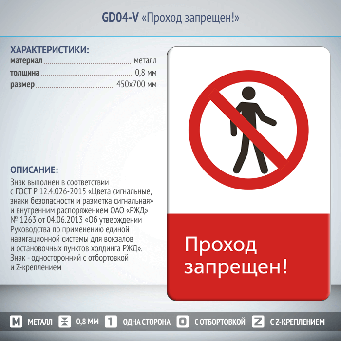 Знак «Проход запрещен!», GD04-V (односторонний вертикальный, 450х700 мм, металл, с отбортовкой и Z-креплением) в Ижевске купить