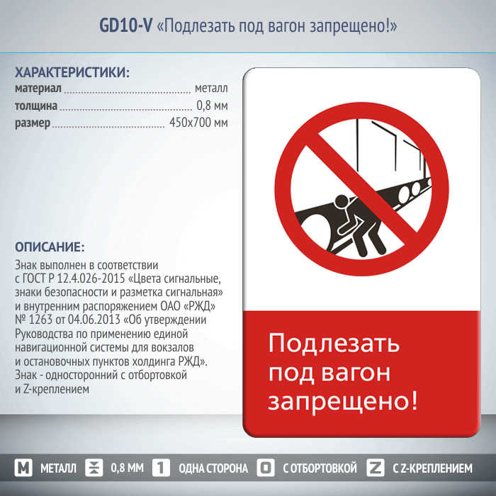 Знак «Подлезать под вагон запрещено!», GD10-V (односторонний вертикальный, 450х700 мм, металл, с отбортовкой и Z-креплением) в Ижевске купить