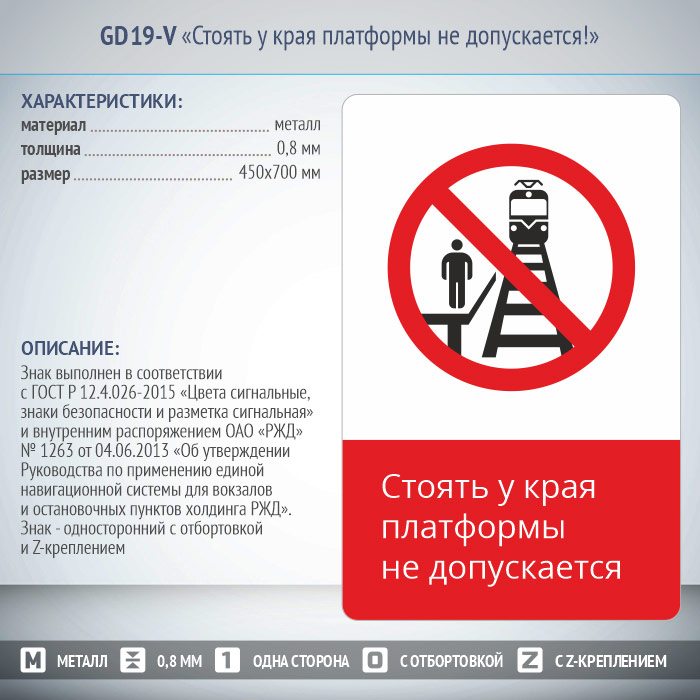 Знак «Стоять у края платформы не допускается!», GD19-V (односторонний вертикальный, 450х700 мм, металл, с отбортовкой и Z-креплением) в Ижевске купить