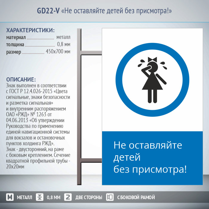 Знак «Не оставляйте детей без присмотра!», GD22-V (двусторонний вертикальный, 450х700 мм, металл, на раме с боковым креплением) в Ижевске купить