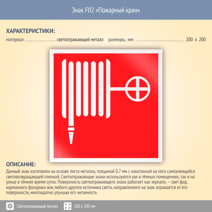 Знак F02 «Пожарный кран» (светоотражающий металл, 200х200 мм) в Ижевске купить