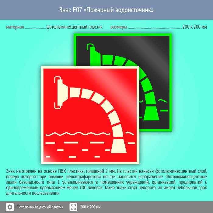 Знак F07 «Пожарный водоисточник» (фотолюминесцентный пластик, 200х200 мм) в Ижевске купить