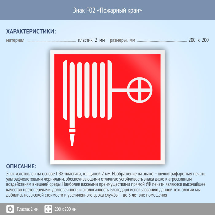 Знак F02 «Пожарный кран» (пластик, 200х200 мм) в Ижевске купить