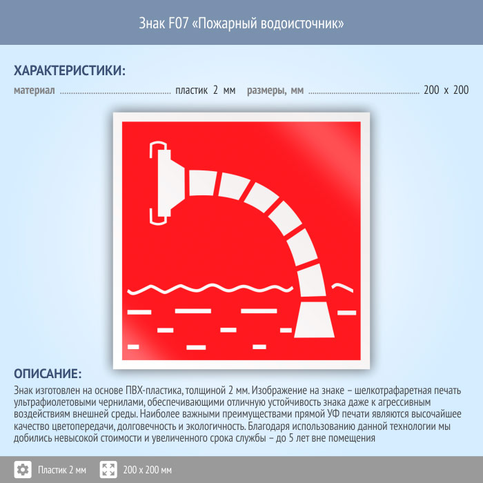 Знак F07 «Пожарный водоисточник» (пластик, 200х200 мм) в Ижевске купить