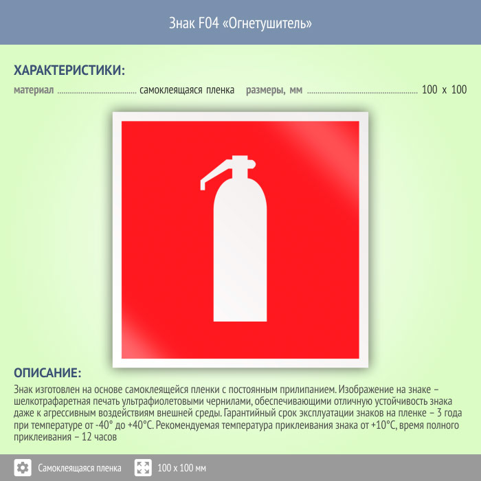 Знак F04 «Огнетушитель» (пленка, 100х100 мм) в Ижевске купить