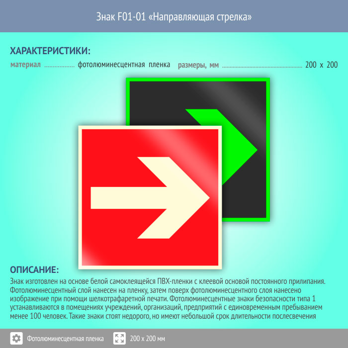Знак F01-01 «Направляющая стрелка» (фотолюминесцентная пленка, 200х200 мм) в Ижевске купить
