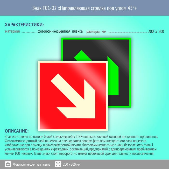 Знак F01-02 «Направляющая стрелка под углом 45°» (фотолюминесцентная пленка, 200х200 мм) в Ижевске купить
