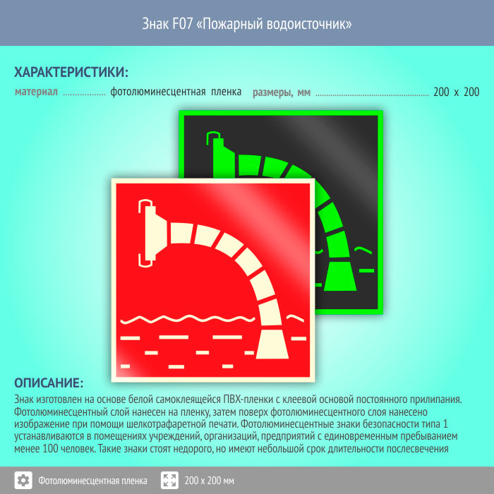 Знак F07 «Пожарный водоисточник» (фотолюминесцентная пленка, 200х200 мм) в Ижевске купить
