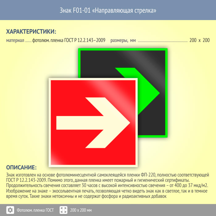 Знак F01-01 «Направляющая стрелка» (фотолюминесцентная пленка ГОСТ 34428-2018, 200х200 мм) в Ижевске купить