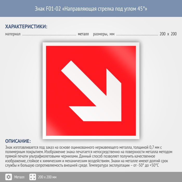 Знак F01-02 «Направляющая стрелка под углом 45°» (металл, 200х200 мм) в Ижевске купить