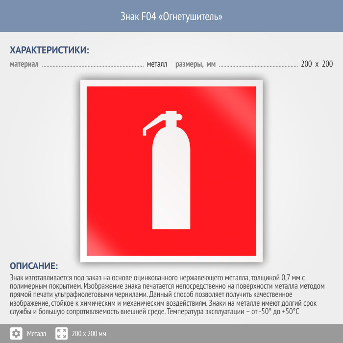 Знак F04 «Огнетушитель» (металл, 200х200 мм) в Ижевске купить