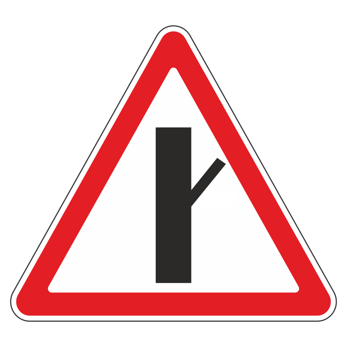 Дорожный знак 2.3.4 «Примыкание второстепенной дороги справа» (металл 0,8 мм, II типоразмер: сторона 900 мм, С/О пленка: тип В алмазная) в Ижевске купить
