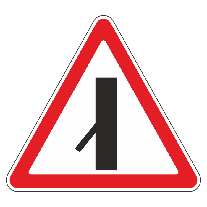 Дорожный знак 2.3.7 «Примыкание второстепенной дороги слева» (металл 0,8 мм, I типоразмер: сторона 700 мм, С/О пленка: тип В алмазная) в Ижевске купить