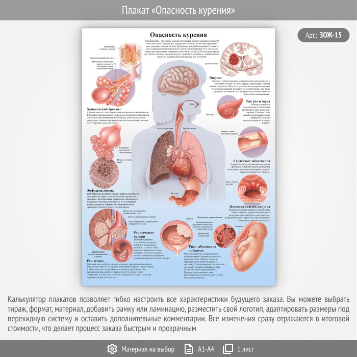 Плакат «Опасность курения» (ЗОЖ-15, 1 лист) в Ижевске купить