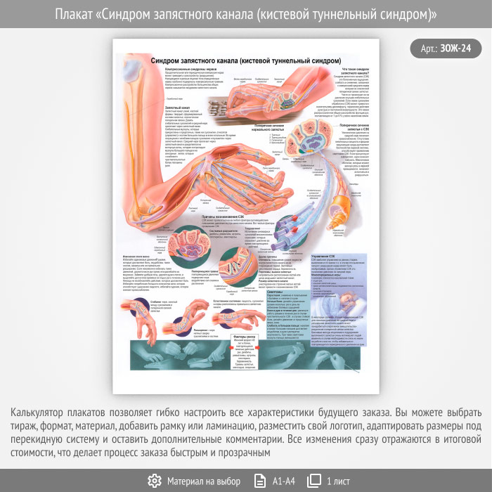 Плакат «Синдром запястного канала (кистевой туннельный синдром)» (ЗОЖ-24, 1 лист) в Ижевске купить