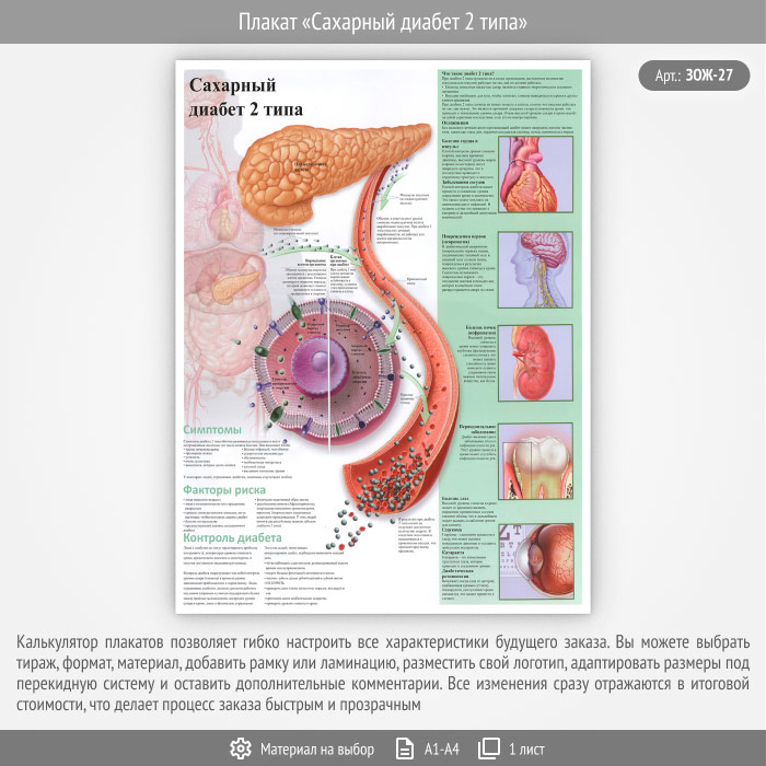 Плакат «Сахарный диабет 2 типа» (ЗОЖ-27, 1 лист) в Ижевске купить
