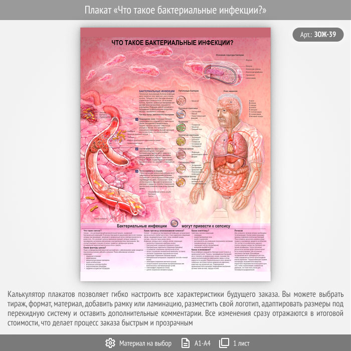 Плакат «Что такое бактериальные инфекции?» (ЗОЖ-39, 1 лист) в Ижевске купить