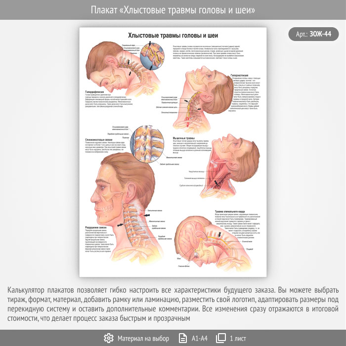 Плакат «Хлыстовые травмы головы и шеи» (ЗОЖ-44, 1 лист) в Ижевске купить